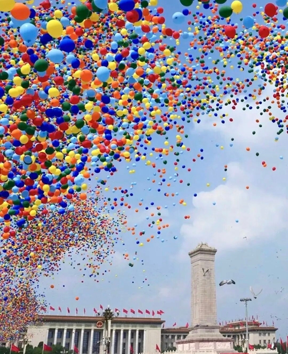 9月3日,紀念中國人民抗日戰爭暨世界反法西斯戰爭勝利80周年大會在北京天安門廣場隆重舉行。當人們沉浸在雄渾威武的解放軍受閱部隊和滾滾鐵流中時,騰空而起的8萬支彩色氣球,伴隨著翱翔的和平鴿,將天安門廣場上空渲染得五彩繽紛、銳氣祥和,瞬間將紀念大會再次推向高潮。